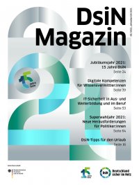 IMPRESSUM Deutschland sicher im Netz e. V., Berlin September 2022 Verantwortlich (V. i. S. d. P.): Dr. Michael Littger Redaktion: Isabelle Rosière, Anne Schilling, Jemima Kumpf, Anna-Leona Bösl, Valentyna Barylo (studentische Mitarbeit) Gestaltung: KRAUT & KONFETTI, Berlin Bildnachweise: S. 1 Ministerin Nancy Faeser / BMI, S. 4 Thomas Tschersich / Telekom, S. 5 Dr. Michael Littger / DsiN, S. 8 Gruppenbild / Jörg Farys, S. 12 Digitale Woche Gruppenbild / Jörg Farys, S. 14 Nils Weichert / DsiN, S. 16 Shutterstock / GaudiLab, S. 18 Gruppenbild / DsiN, S. 26 Jahreskongress Panel / Jörg Farys, S. 28 Dr. Markus Richter / Jörg Farys, S. 30 oben Thomas Tschersich / Jörg Farys, S. 30 links Arne Schönbohm / Jörg Farys, S. 30 unten Juliane Seifert / Jörg Farys, S. 33 Hotel Oderberger / Jörg Farys, S. 34 MDW / Jörg Farys, S. 36 Gruppenbild / Jörg Farys, Innenteil S. 11 Ansprache Kongress / DsiN, S. 15 Thomas Tschersich / Telekom, Alexander Kläger / SAP, Martin Drechsler / FSM, Dr. Robert Reinermann / Vds, Michael Guntsch / Google, Dr. Michael Littger / DsiN, Joachim Schulte / DsiN, S. 16 Pia Kärger / DG, Dr. Joachim Damasky / VDA, Prof. Dr. Gabi Dreo Rodosek / CODE, Gesa Förster / BMWK, Prof. Dr. Christian Bär / Datev, Dr. Barbara Hoffmann / BMFSFJ, Ulrich Kelber / Bundesdatenschutzbehörde, Maximilian Kiewel / Bild, Joachim Maiß / BvLB, Holger Münch / BKA, Dr. Alexander Schäfer / VB2, Arne Schönbohm / BSI, Prof. Dr. Michael Waldner / SIT, Christoph Wenk-Fischer / bevh, S. 40 Klemmbrett / pixeden, S. 42 Martin Drechsler / FSM, S. 46 Gespräch / Jörg Farys, S. 48 Gruppenbild / DsiN, S. 50 Digitaler Engel / Jörg Farys, S. 54 TiSiM Mobil / DsiN, S. 58 Sandra Balz / DsiN, S. 60 Dr. Anna Christmann / BMWK Kontakt: Deutschland sicher im Netz e. V. Albrechtstr. 10 c 10117 Berlin Telefon +49 (0) 30 767581-500 info@sicher-im-netz.de sicher-im-netz.de